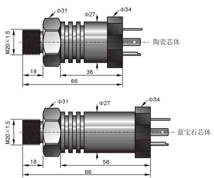 HQ100T是采用陶瓷材料经特殊工艺精制而成的干式陶瓷压阻压力传感器,陶瓷是一种公认的高弹性、抗腐蚀、抗磨损、抗冲击和振动的材料。陶瓷的热稳定特性及它的厚膜电阻可以使它的工作温度范围高达-40℃~150℃,而且具有测量的高精度、高稳定性。电气绝缘程度>2kV,输出信号强,长期稳定性好。高特性,低价格的陶瓷传感器将是压力传感器的发展方向,在欧美国家有全面替代其它类型传感器的趋势,在中国越来越多的用户使用陶瓷传感器替代扩散硅压力传感器。